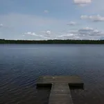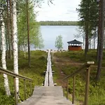 Villan Kangasjaervi Pudasjarvi med 1 sovrum har en parkering och en terrass med utsikt över sjön.